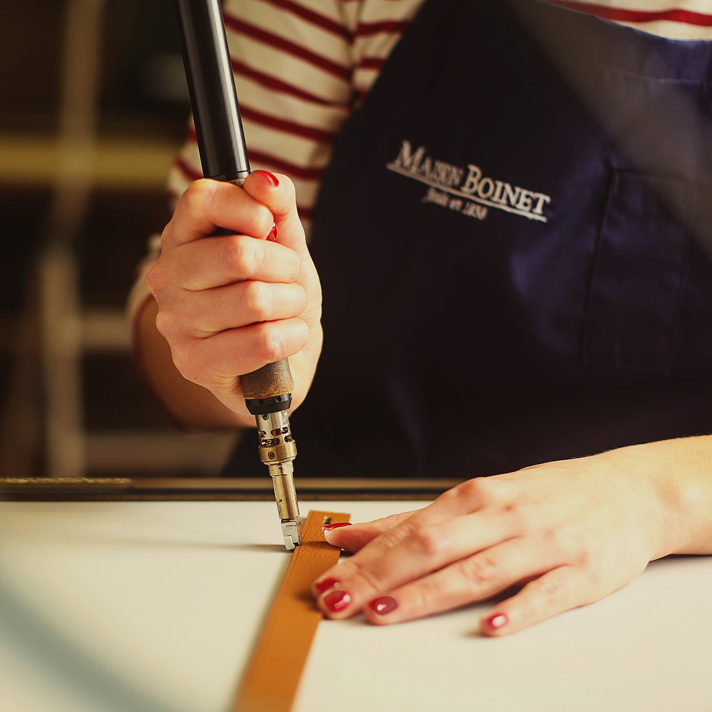 • Made-in-France manufacturing: We are proud of the fact that all our belts and leather goods are produced entirely in Château-Renault, France. This allows us to ensure optimum working conditions and support the local economy.